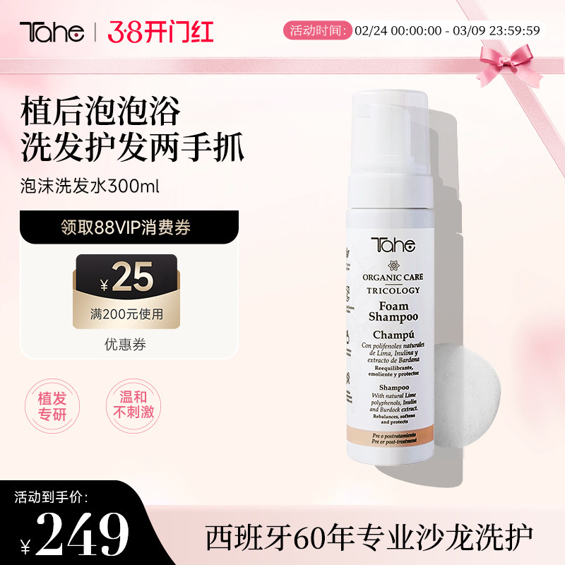 西班牙Tahe植发护理头皮舒缓泡沫洗发水舒缓滋养温和不刺激200ml
