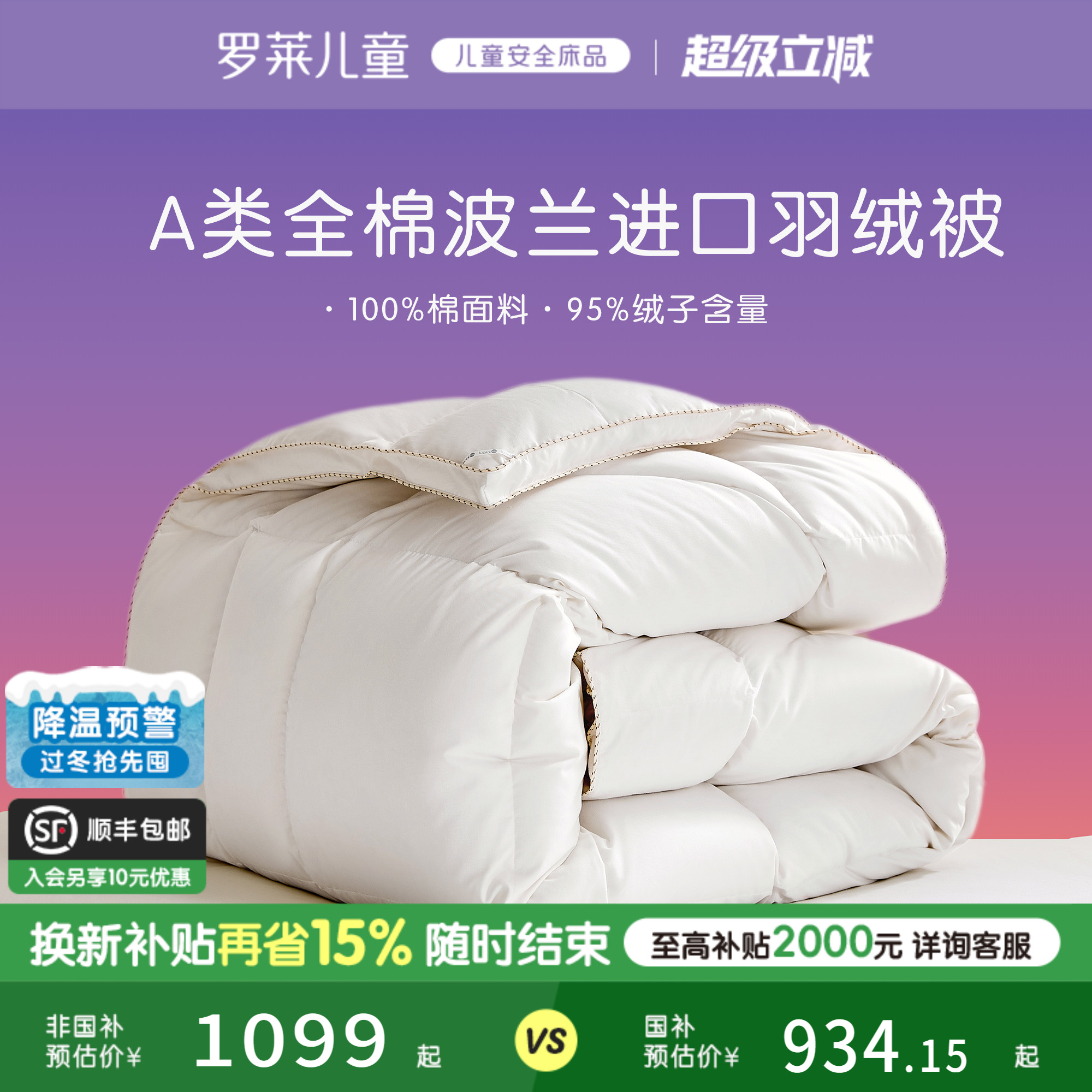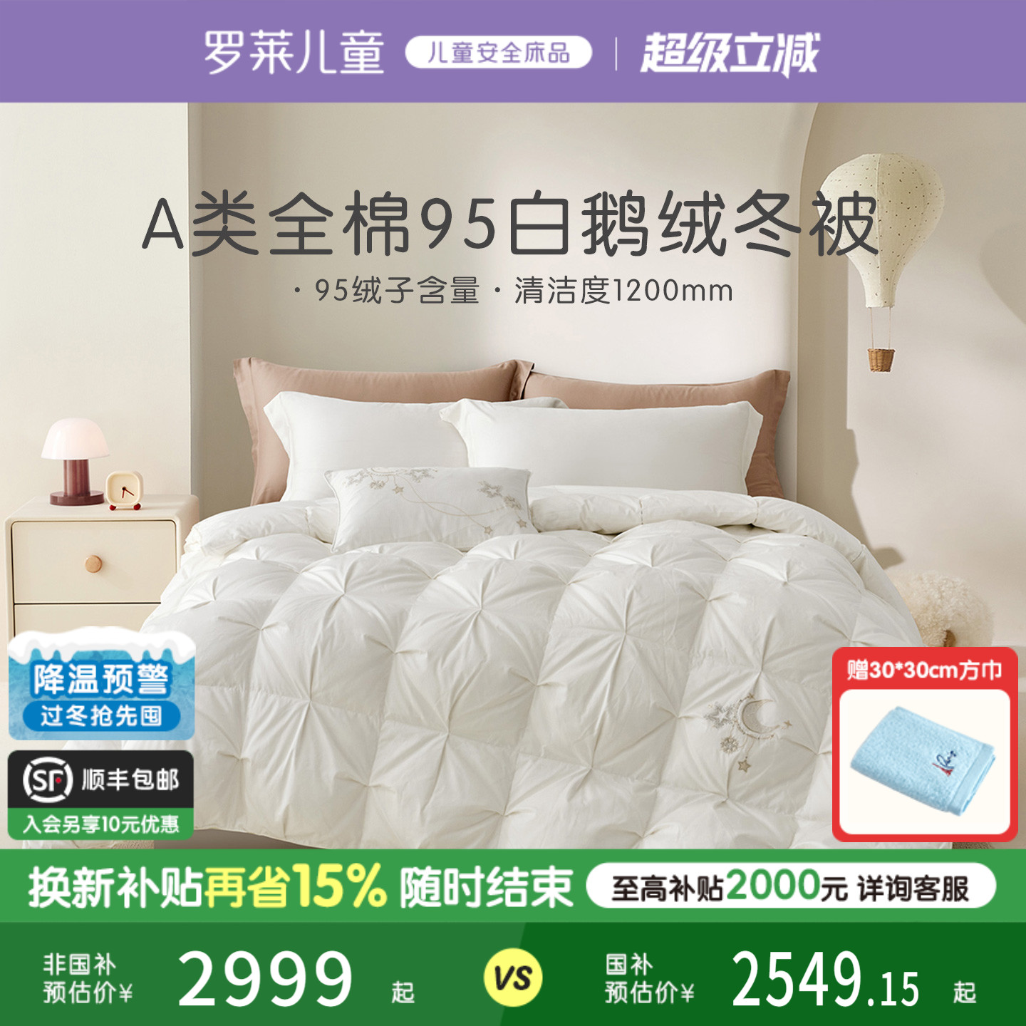 罗莱儿童新品95鹅绒被子冬被羽绒被芯宝宝四季通用a类全棉可水洗