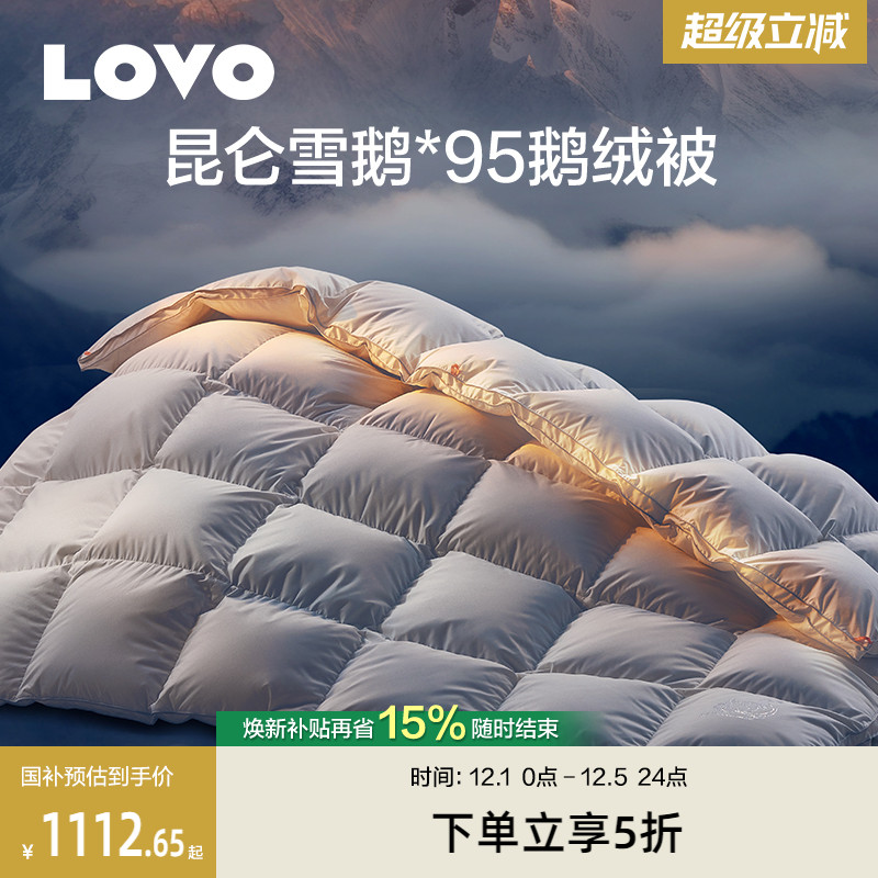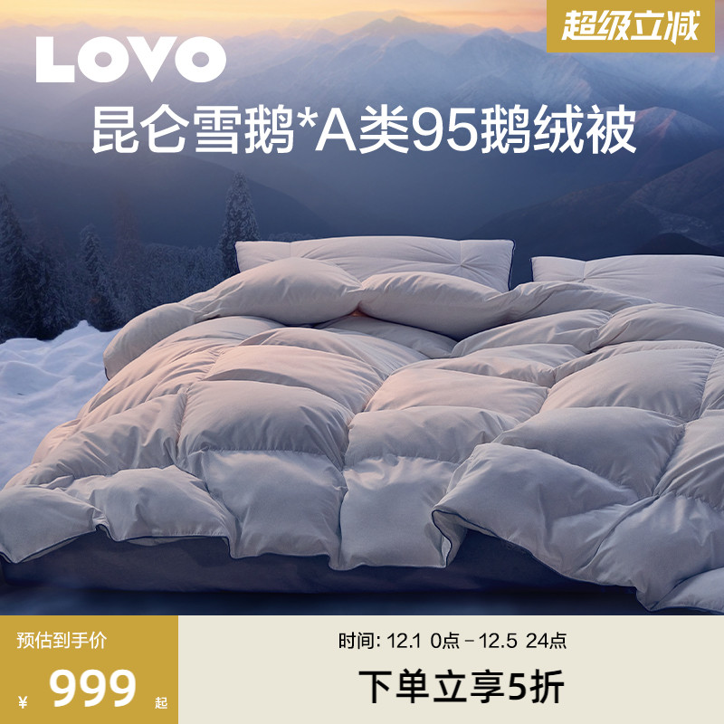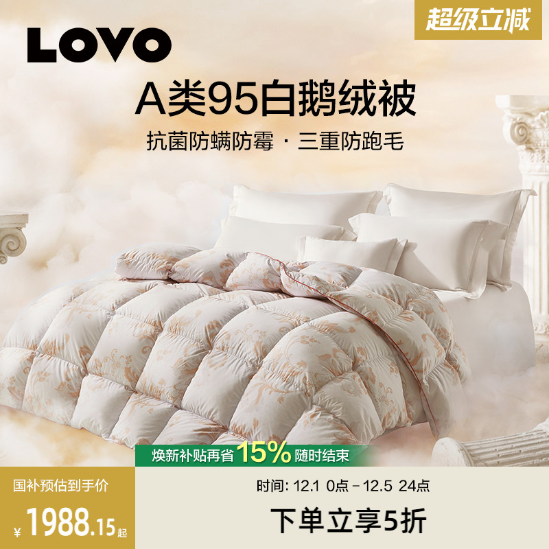 罗莱家纺LOVO乐蜗羽绒被95白鹅绒被子被芯冬被保暖春秋被子母被