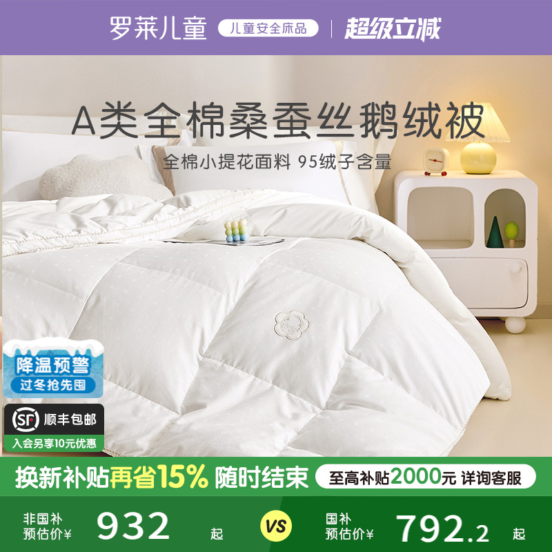 罗莱儿童秋冬新品被子A类全棉95鹅绒被可水洗四季被冬被羽绒被