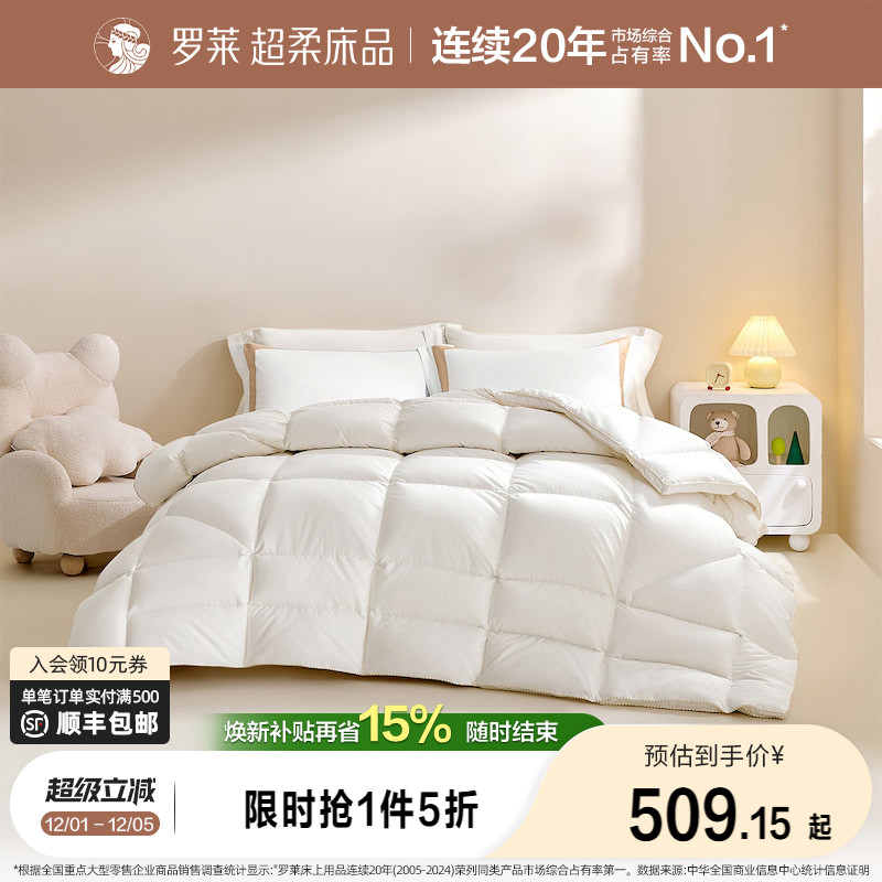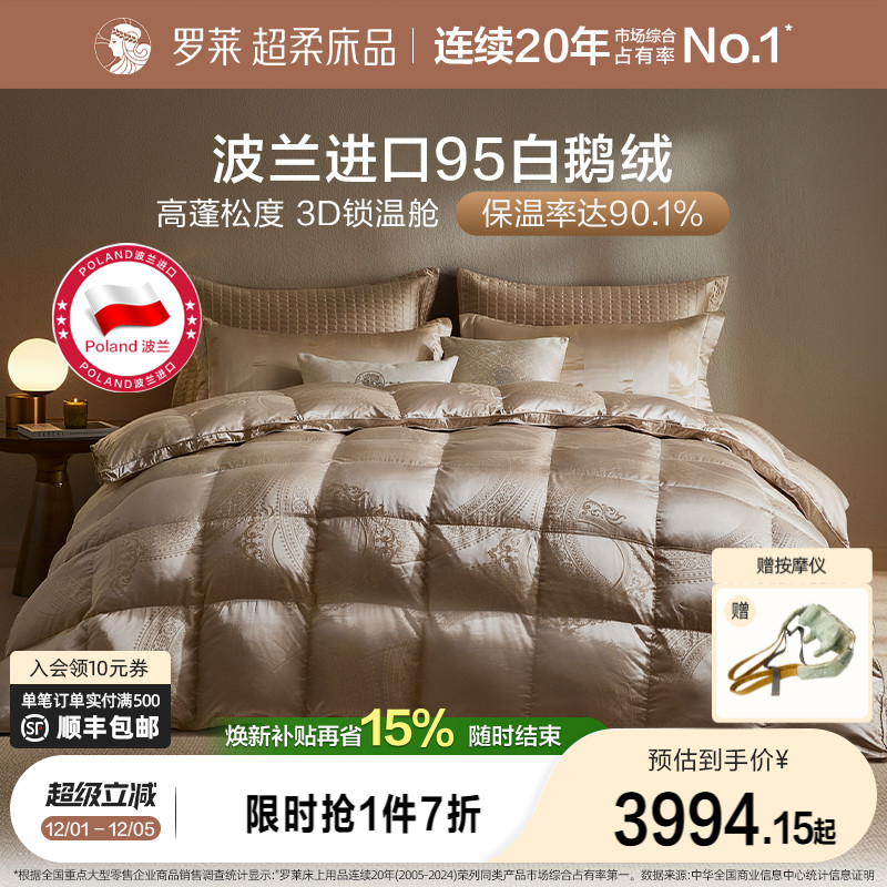 罗莱家纺羽绒被子冬被被芯双人床波兰进口95白鹅绒冬被加厚保暖