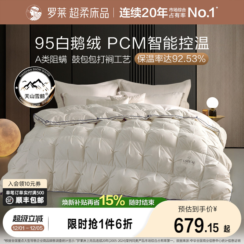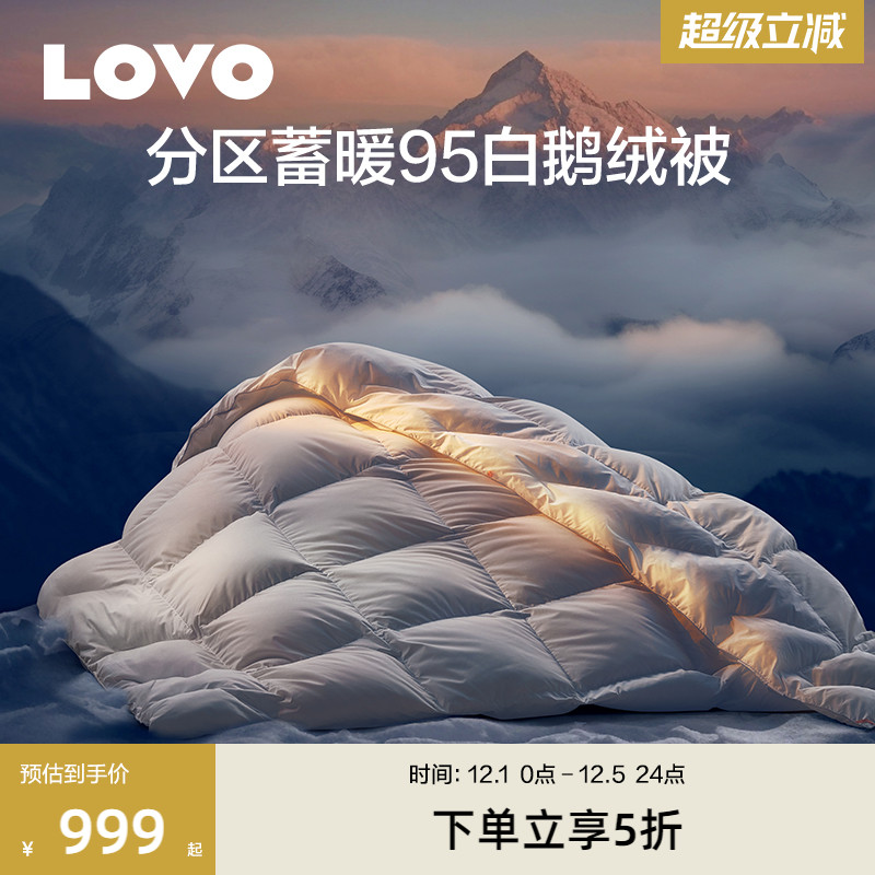 【新品】罗莱家纺LOVO控温锁温羽绒被95白鹅绒抗菌保暖冬被高蓬松