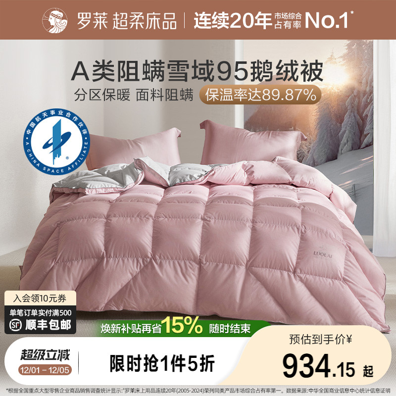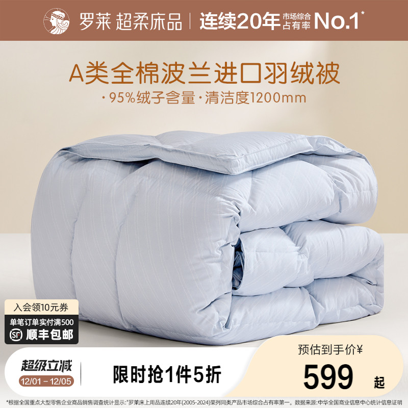 罗莱家纺被子被芯双人95羽绒被波兰进口羽绒A类防螨加厚保暖冬被