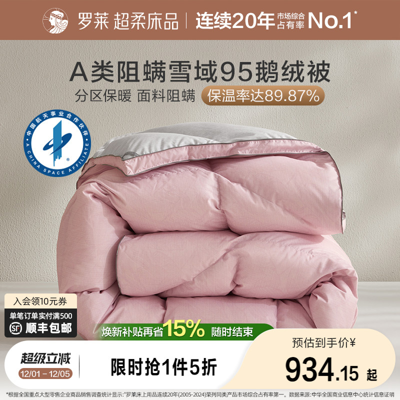 罗莱家纺羽绒被秋冬95鹅绒阻螨抗菌冬被春秋被子被芯抗菌四季被