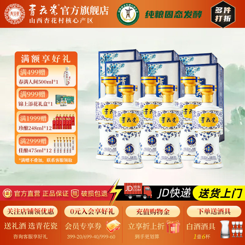青花瓷臻酿杏花村53度清香型白酒整箱纯粮食酒水口粮酒婚宴送礼