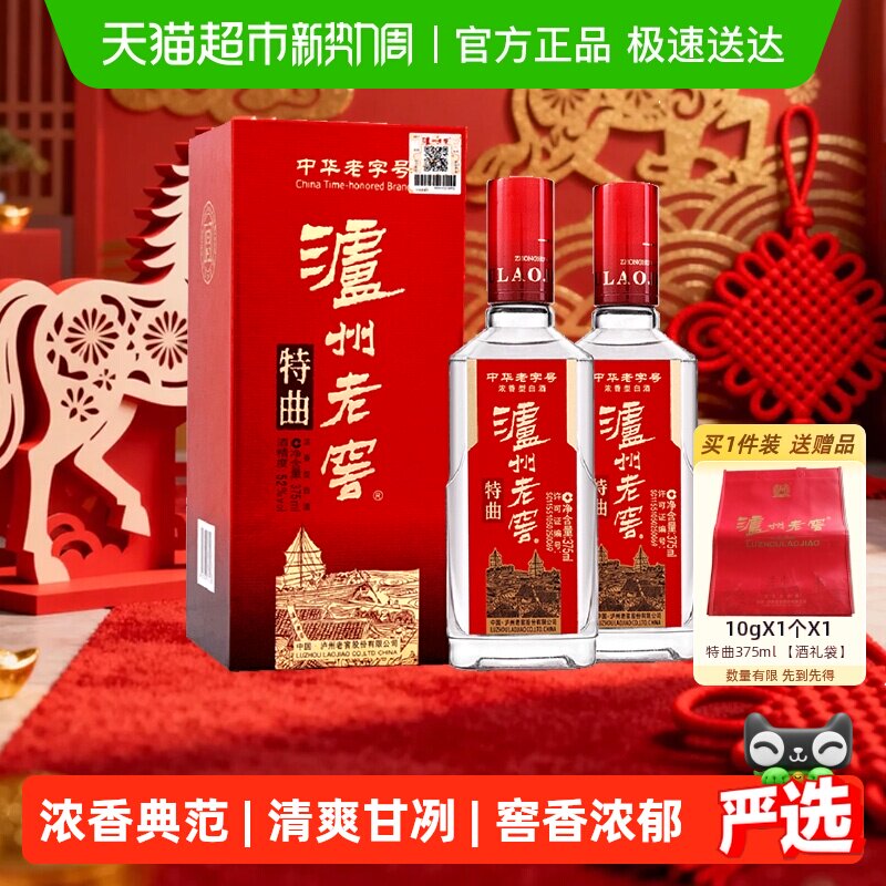 泸州老窖特曲52度浓香型高度国产白酒375ml*2盒礼盒送礼婚宴纯粮