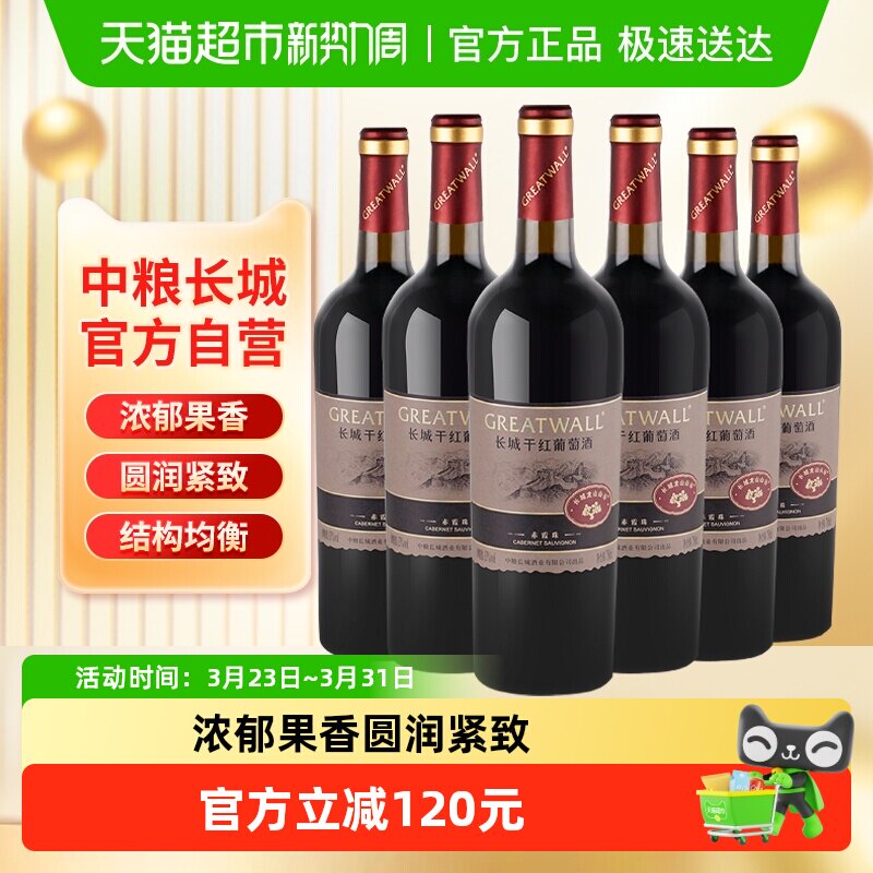 中粮长城干红葡萄酒红酒山谷高级赤霞珠750ml×6瓶整箱送礼婚宴