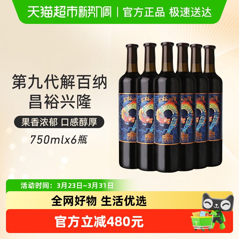 张裕红酒昌裕兴隆解百纳干红葡萄酒750mlx6瓶婚庆婚宴聚餐送礼