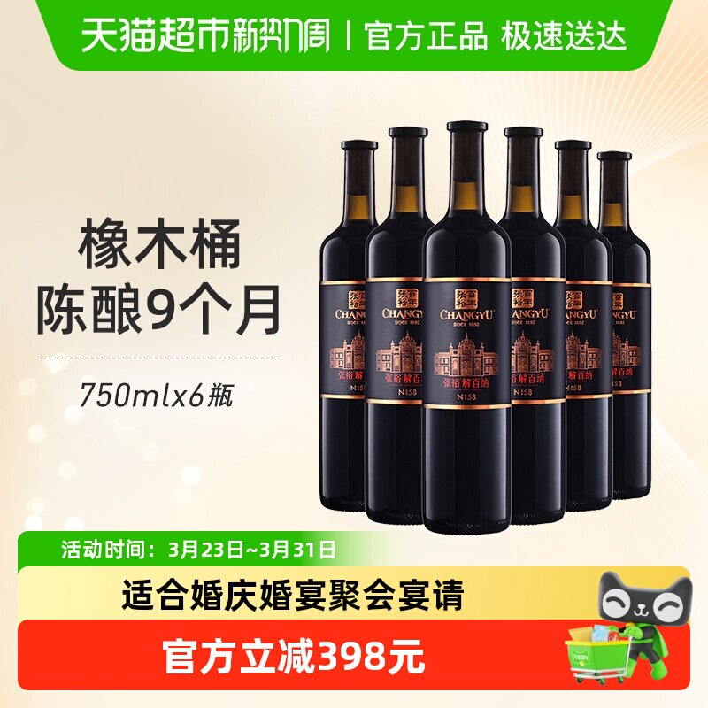 张裕红酒第九代特选级N158解百纳干红750mlx6瓶葡萄酒婚宴婚宴