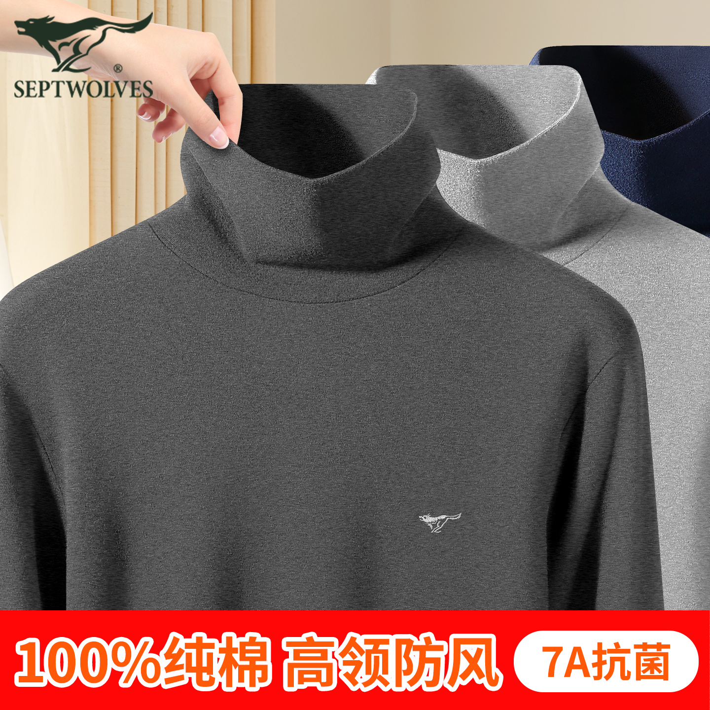 七匹狼纯棉高领秋衣男款保暖内衣单件全棉上衣秋裤套装半立领防风