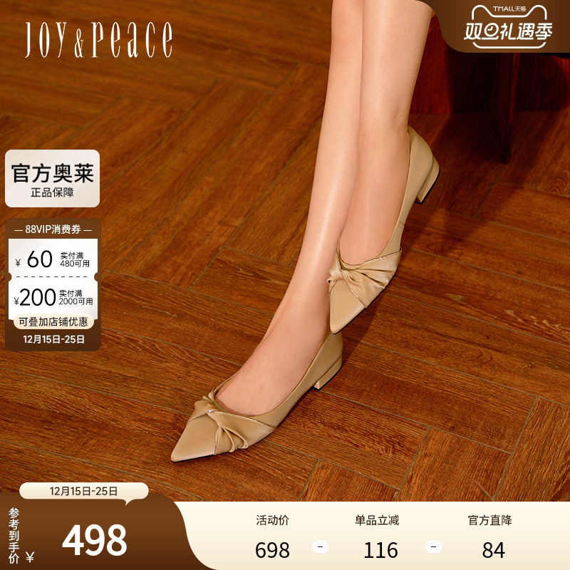 明星同款真美诗官方奥莱牛皮舒适蝴蝶结水钻尖头低跟单鞋15061CQ3