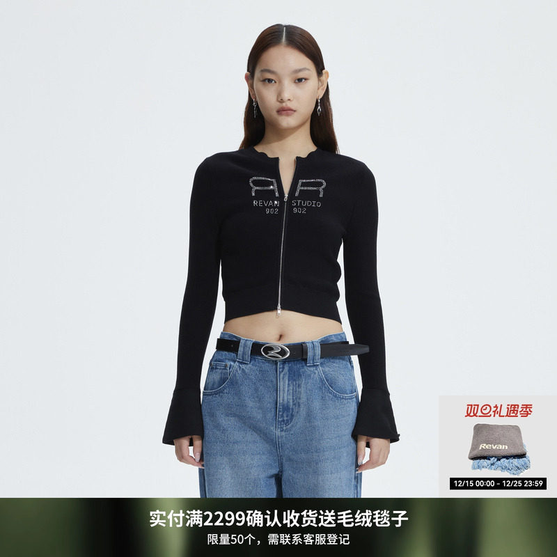 REVAN芮范麦迪娜明星同款复古毛衣短开衫RN10106297