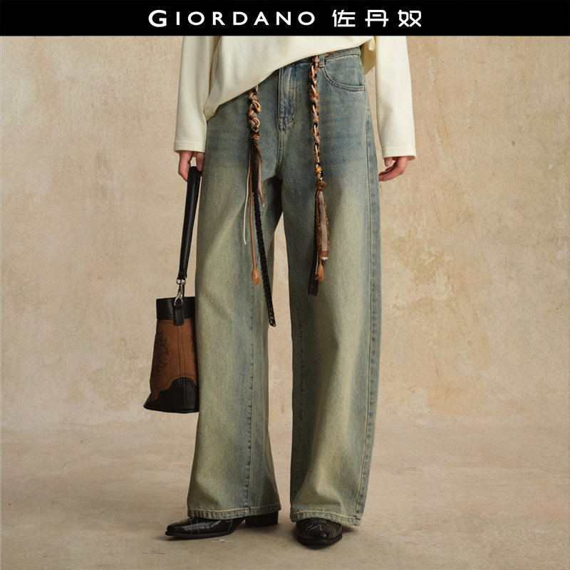 【韩国明星同款】佐丹奴女装猫须洗水高腰紧身微喇牛仔裤05415670
