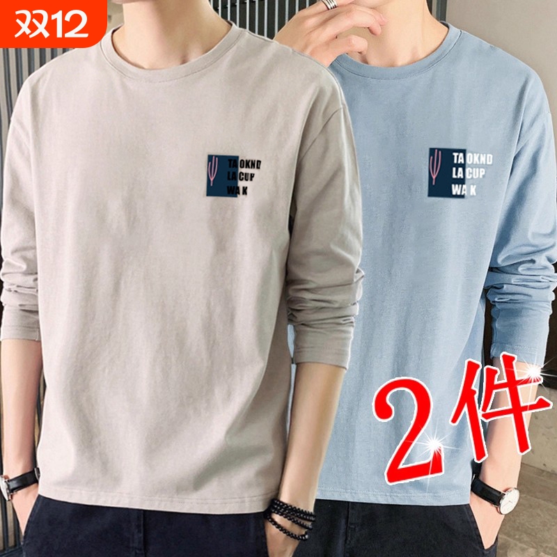 秋季纯棉圆领长袖t恤男简约修身休闲百搭运动健身打底衫体恤上衣