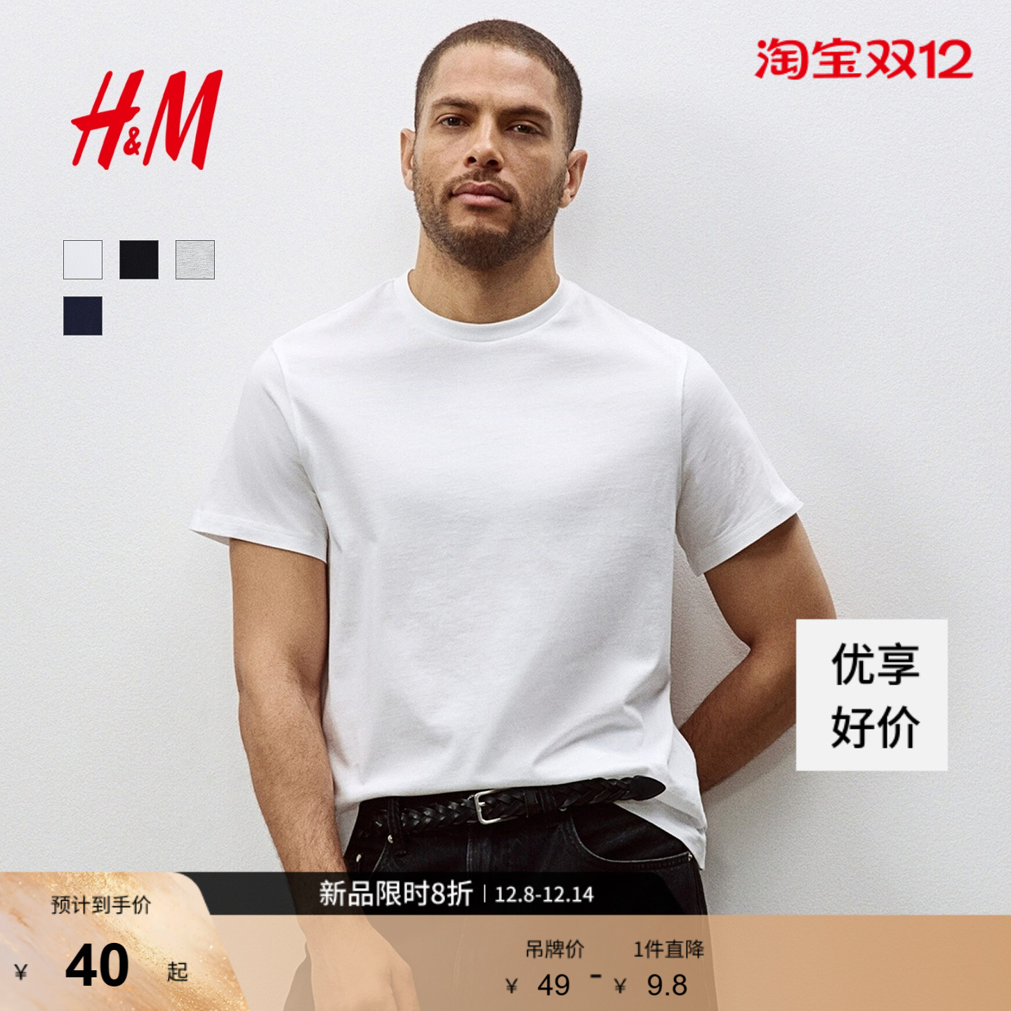 HM男装T恤秋季休闲简约圆领短袖舒适纯棉内搭打底衫上衣0685816