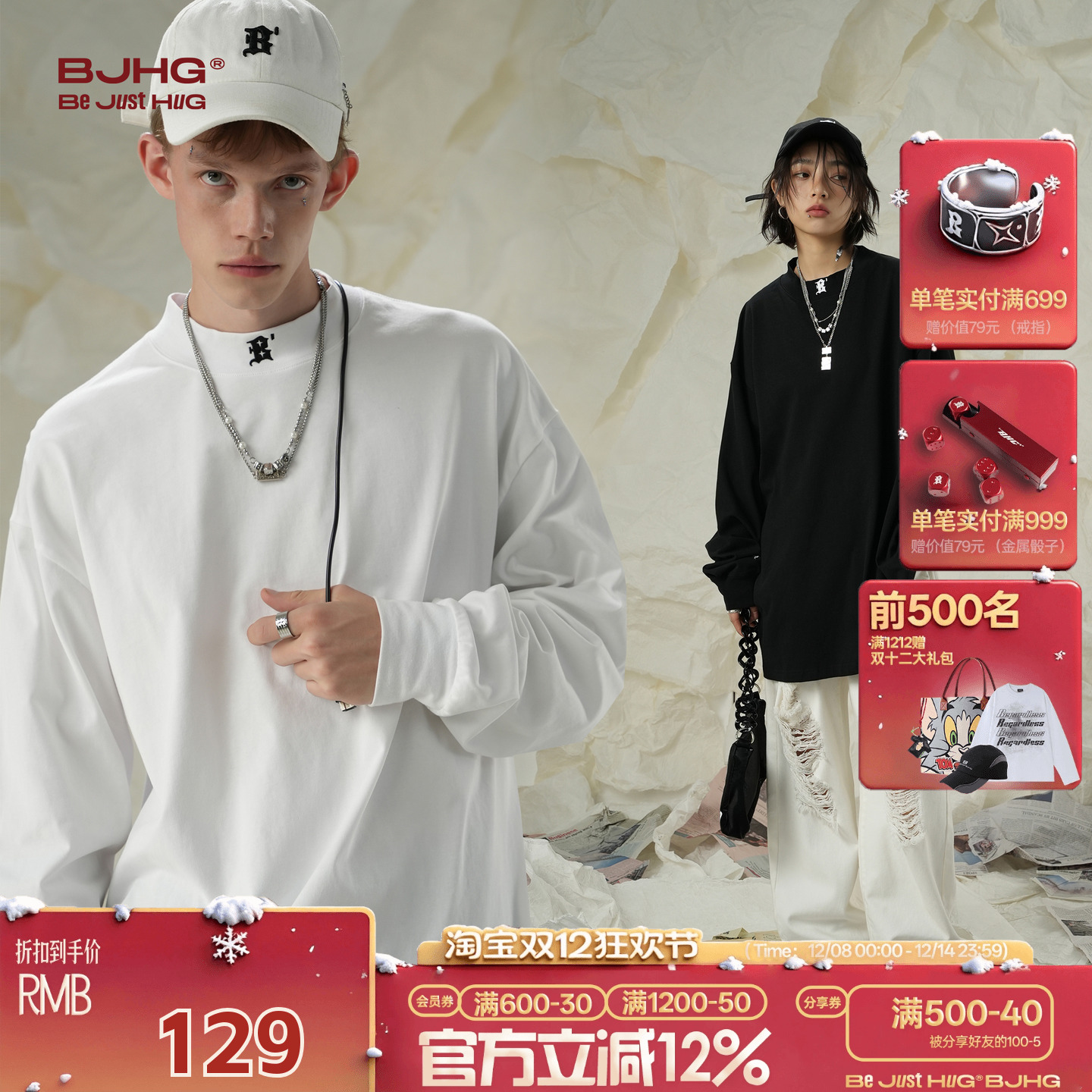 BJHG不计后果 美式长袖T恤男款秋季纯棉圆领休闲内搭打底衫卫衣女