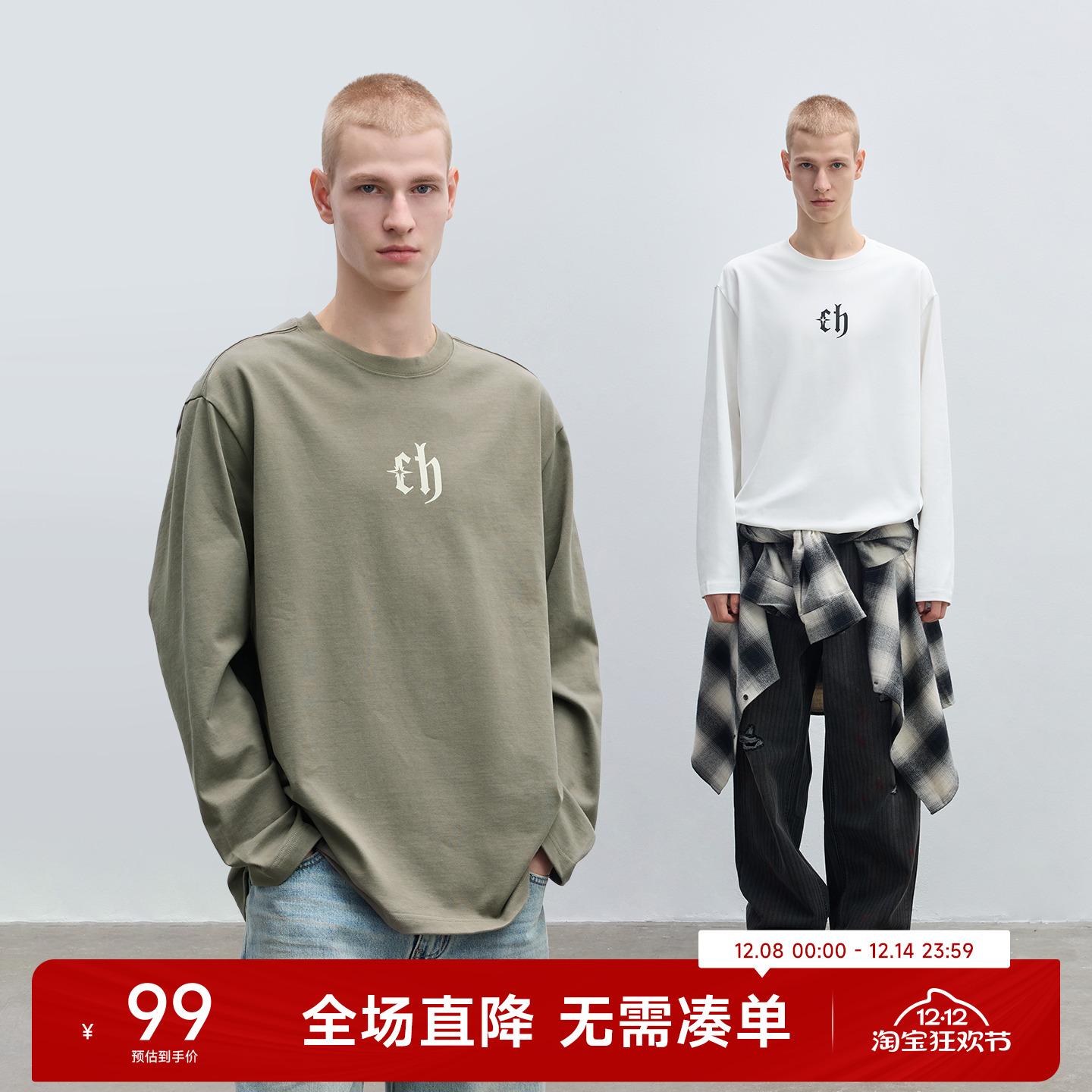 CH黑色美式休闲长袖T恤男秋季潮牌高街简约经典印花内搭打底衫