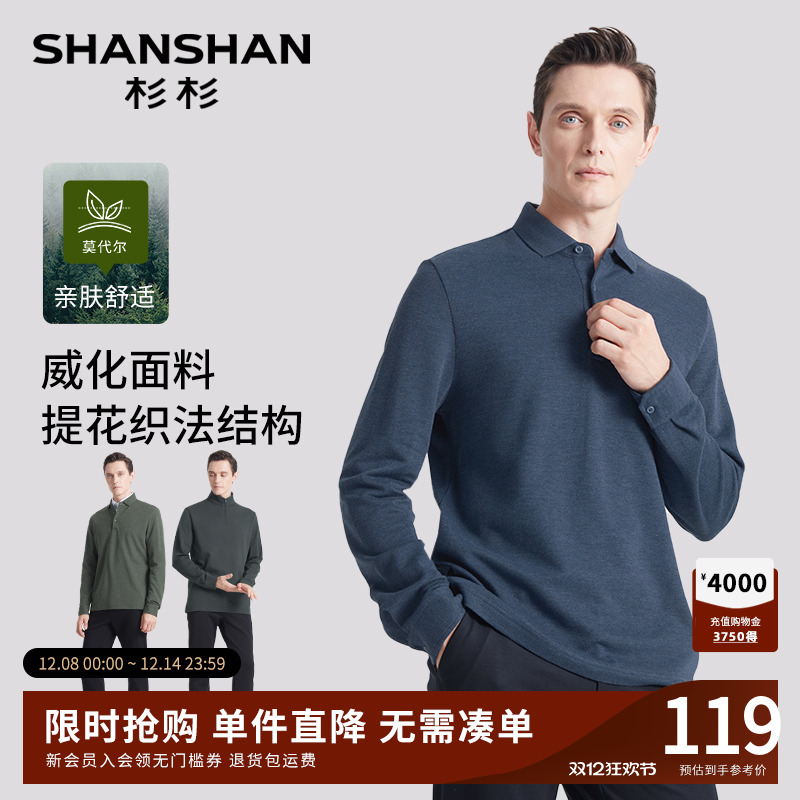 杉杉男士长袖polo衫商务休闲2025秋季新款翻领t恤男款纯棉打底衫