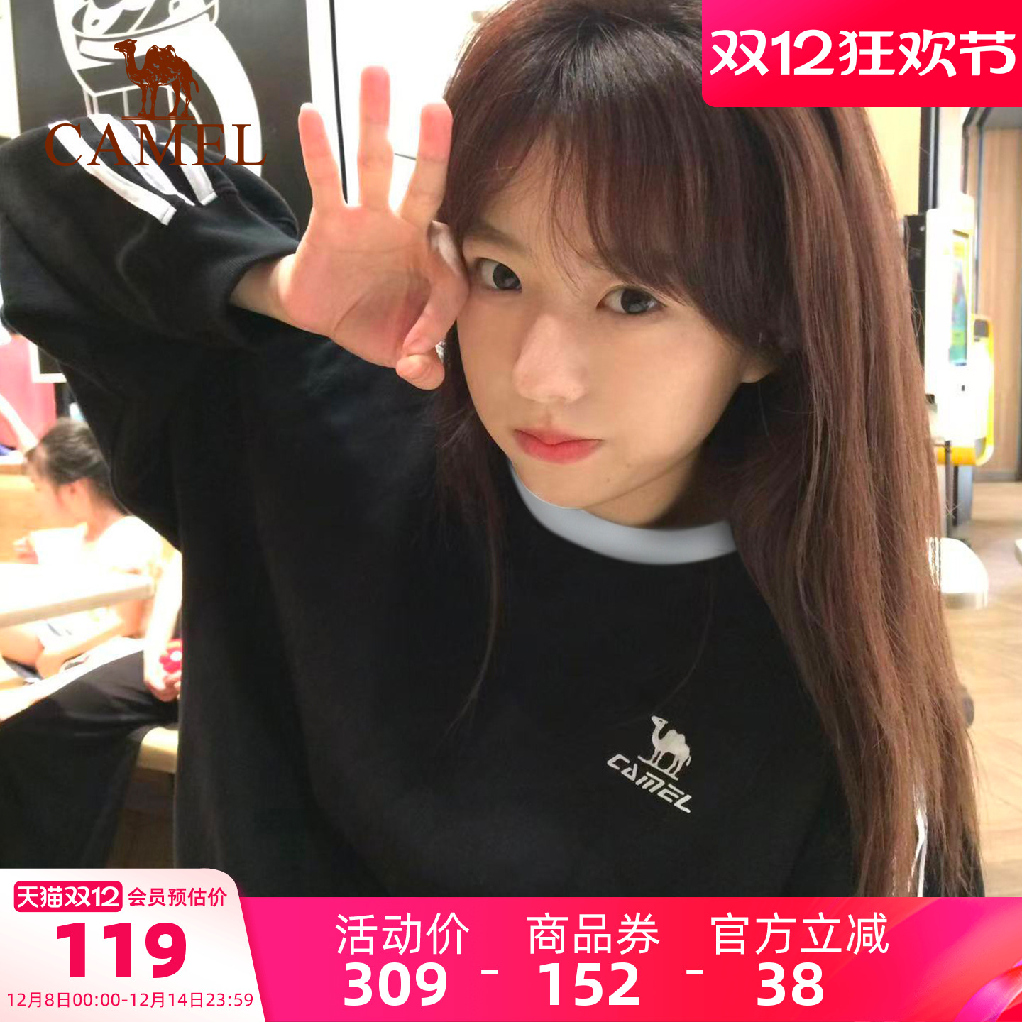 骆驼圆领长袖t恤套头卫衣男士春秋季时尚宽松薄款休闲运动上衣女