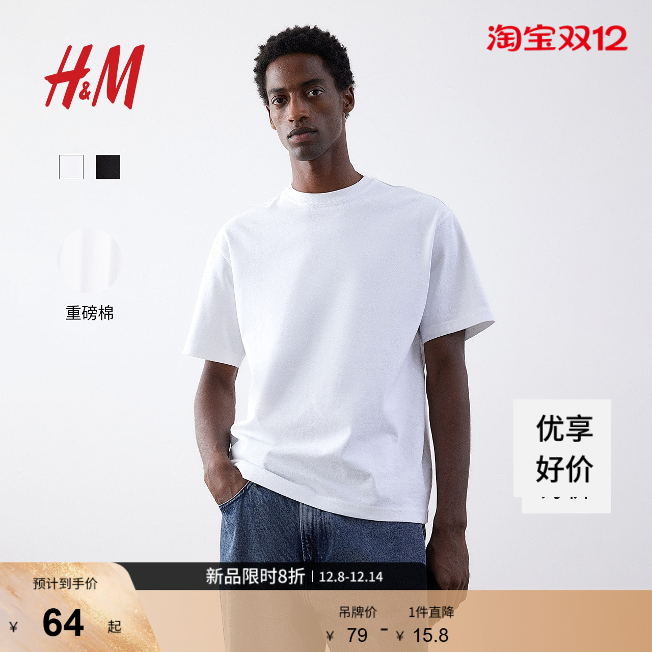 HM男装女装T恤秋季重磅纯棉打底衫内搭休闲短袖情侣装上衣0608945