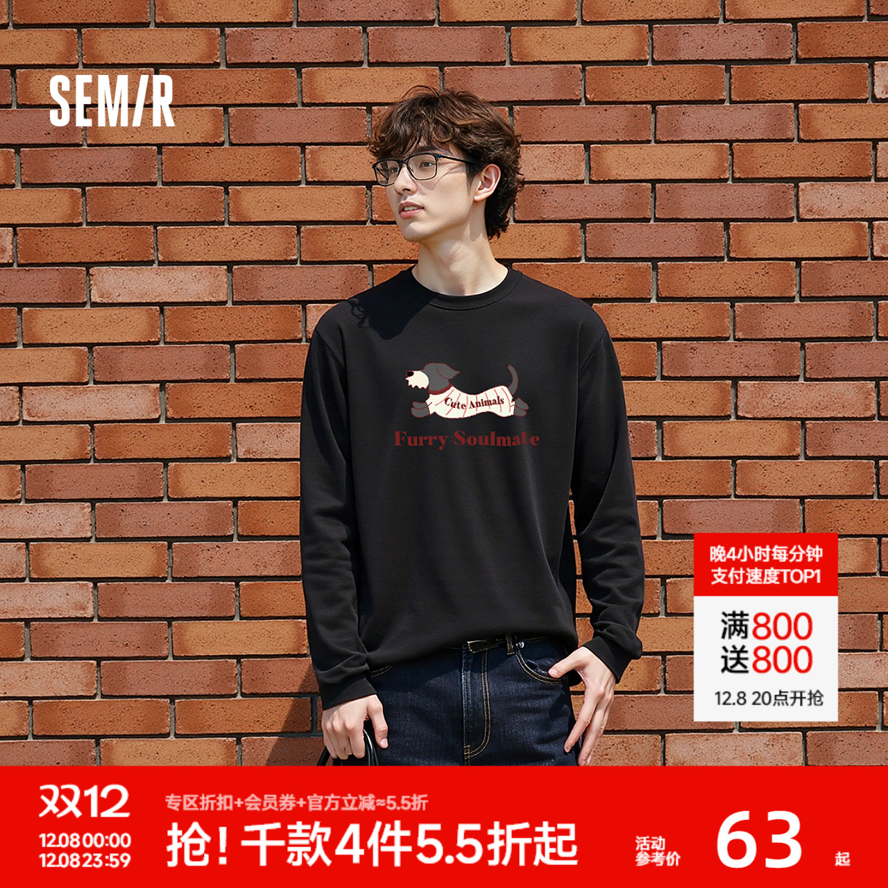 森马长袖T恤男秋季萌宠印花内搭2025新款美式情侣装休闲打底上衣