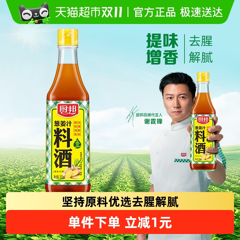 厨邦葱姜汁料酒500ml专业调味料家用调料去腥增香厨房烹饪调味品