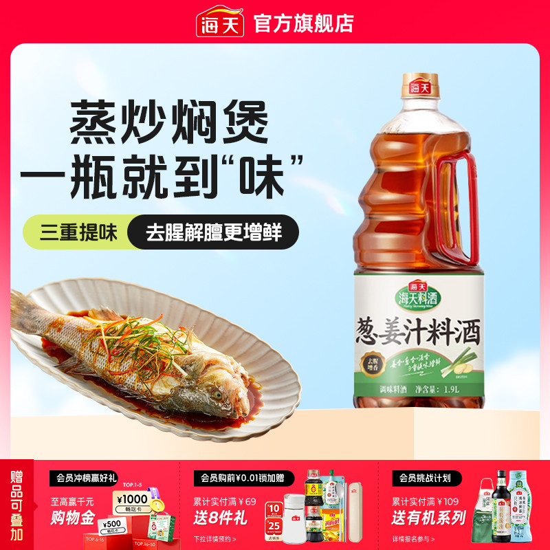 【秒杀】海天葱姜汁料酒1.9L大桶装家用厨房烹饪去腥增香调味料酒