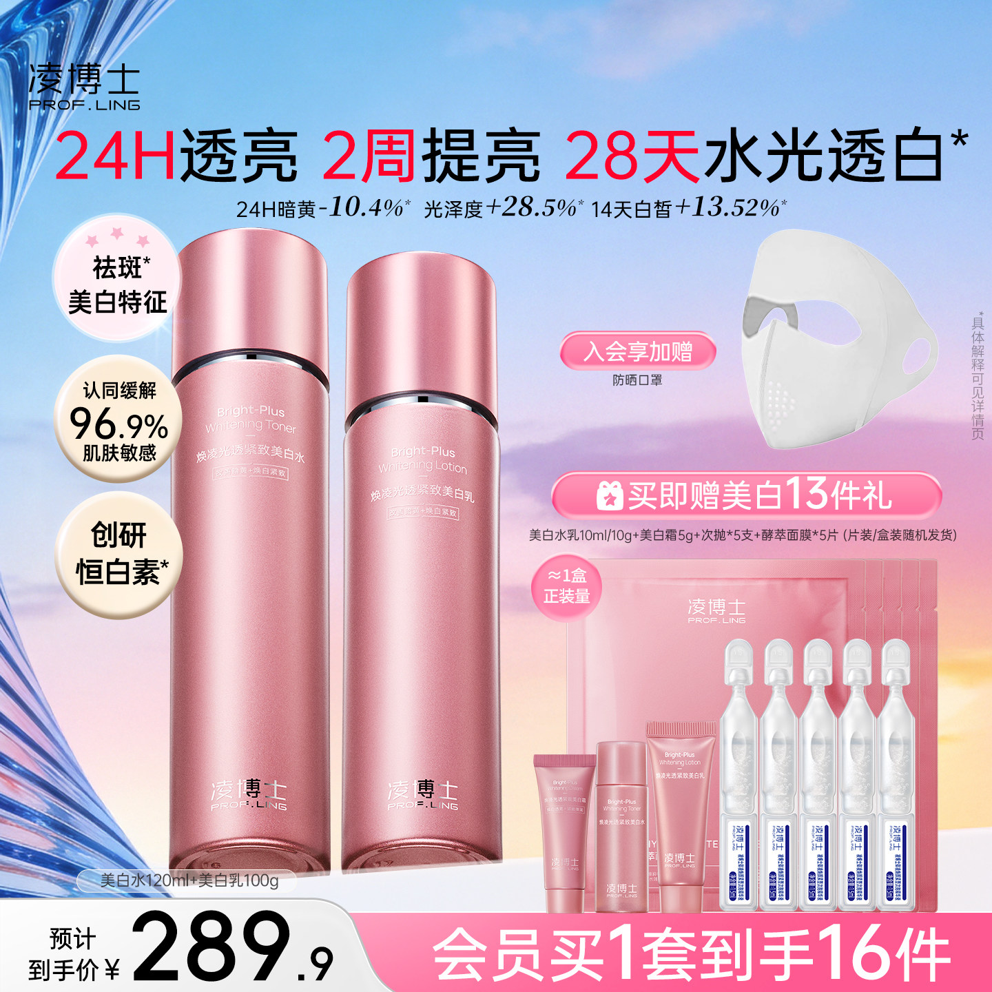 凌博士美白水乳祛斑美白紧致抗皱干皮保湿温和减黄透亮女护肤套装