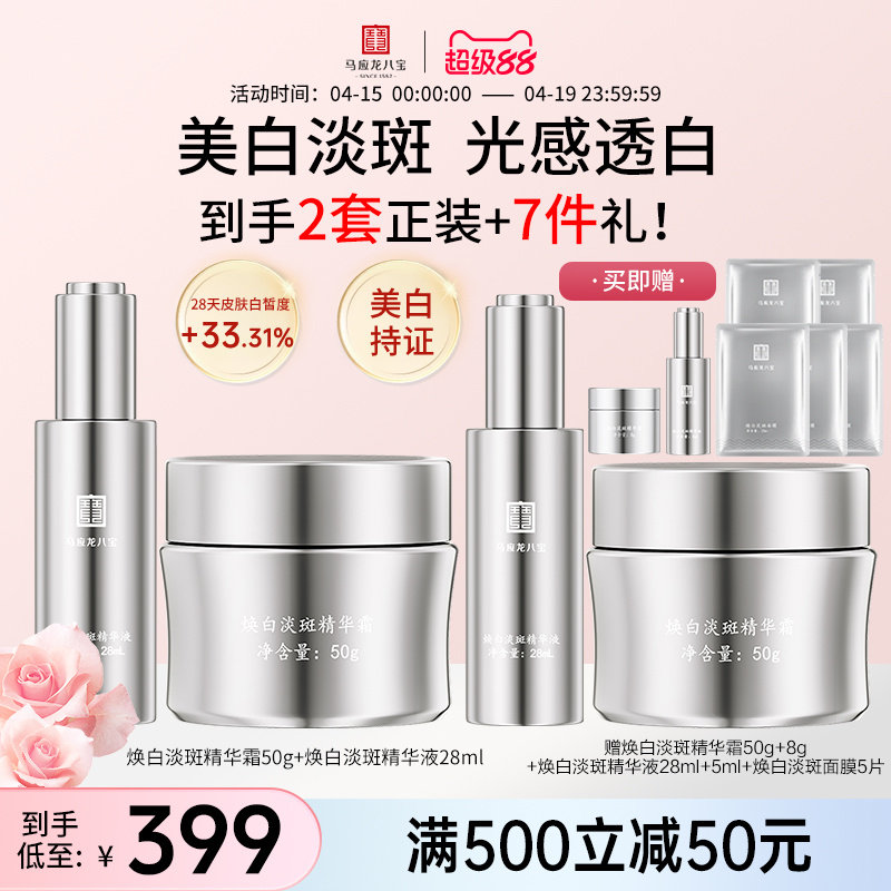 马应龙八宝美白淡斑面霜精华液祛斑焕亮提亮烟酰胺护肤品套装正品