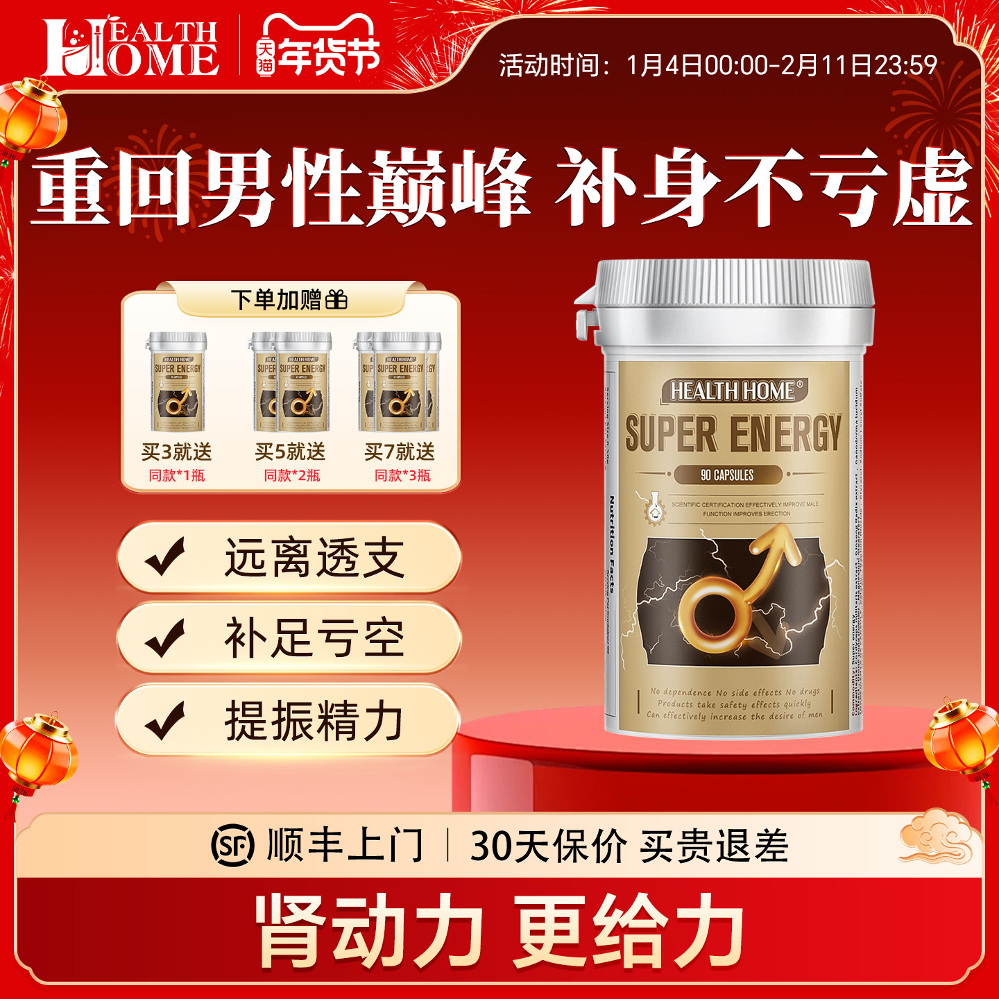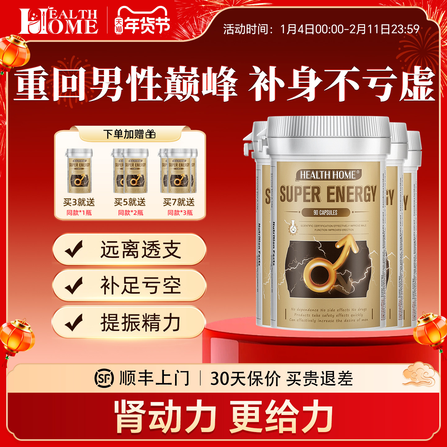 HEALTHHOME喜来芝瓜拉那金牡蛎玛咖虫草男性保健品到手共*4瓶