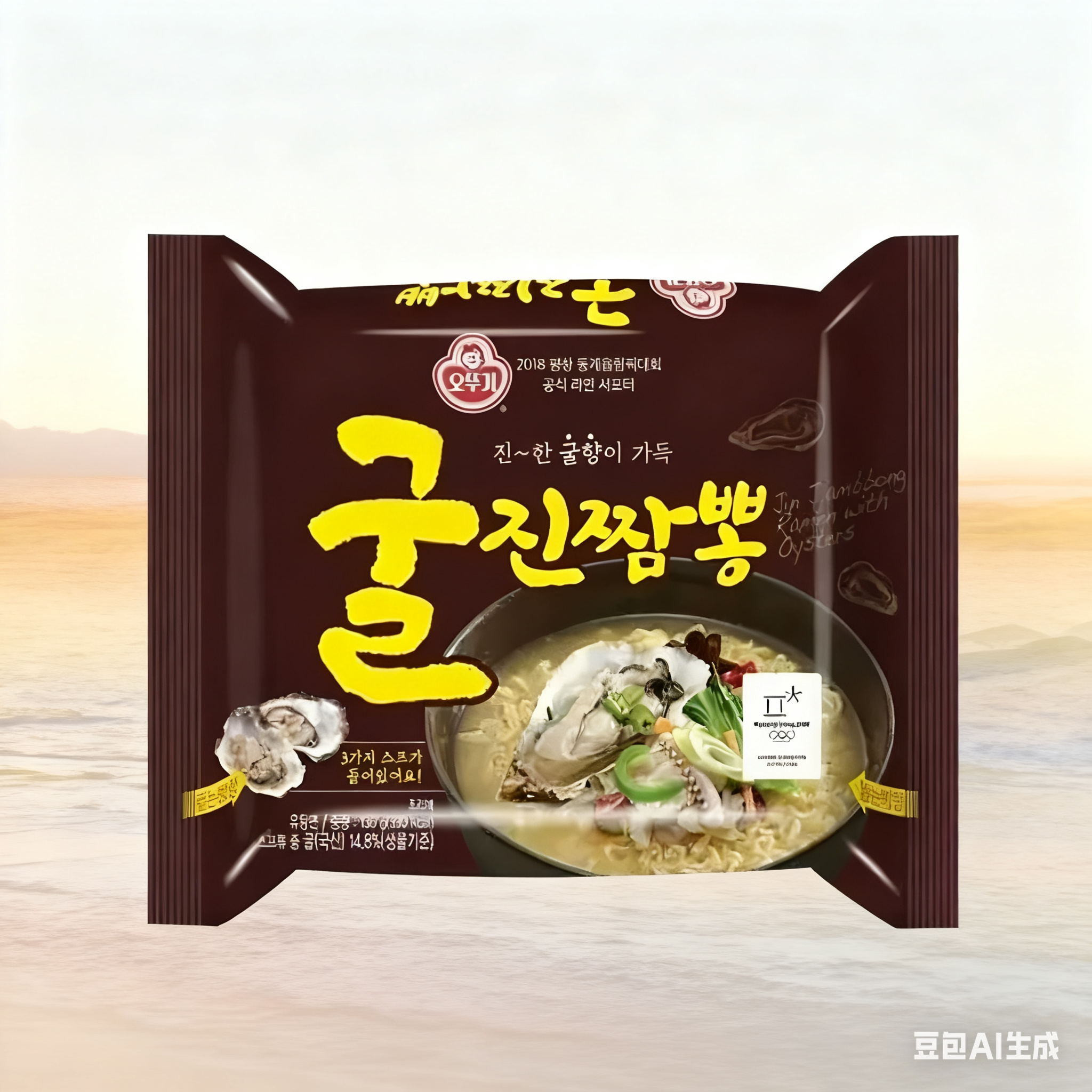 韩国进口方便面 不倒翁奥土基真生蚝海鲜拉汤面130g 泡面煮面