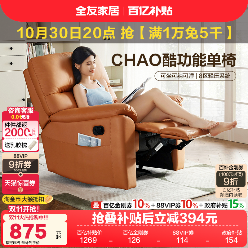 政府补贴全友家居简约现代多功能电动单人小沙发客厅休闲懒人躺椅