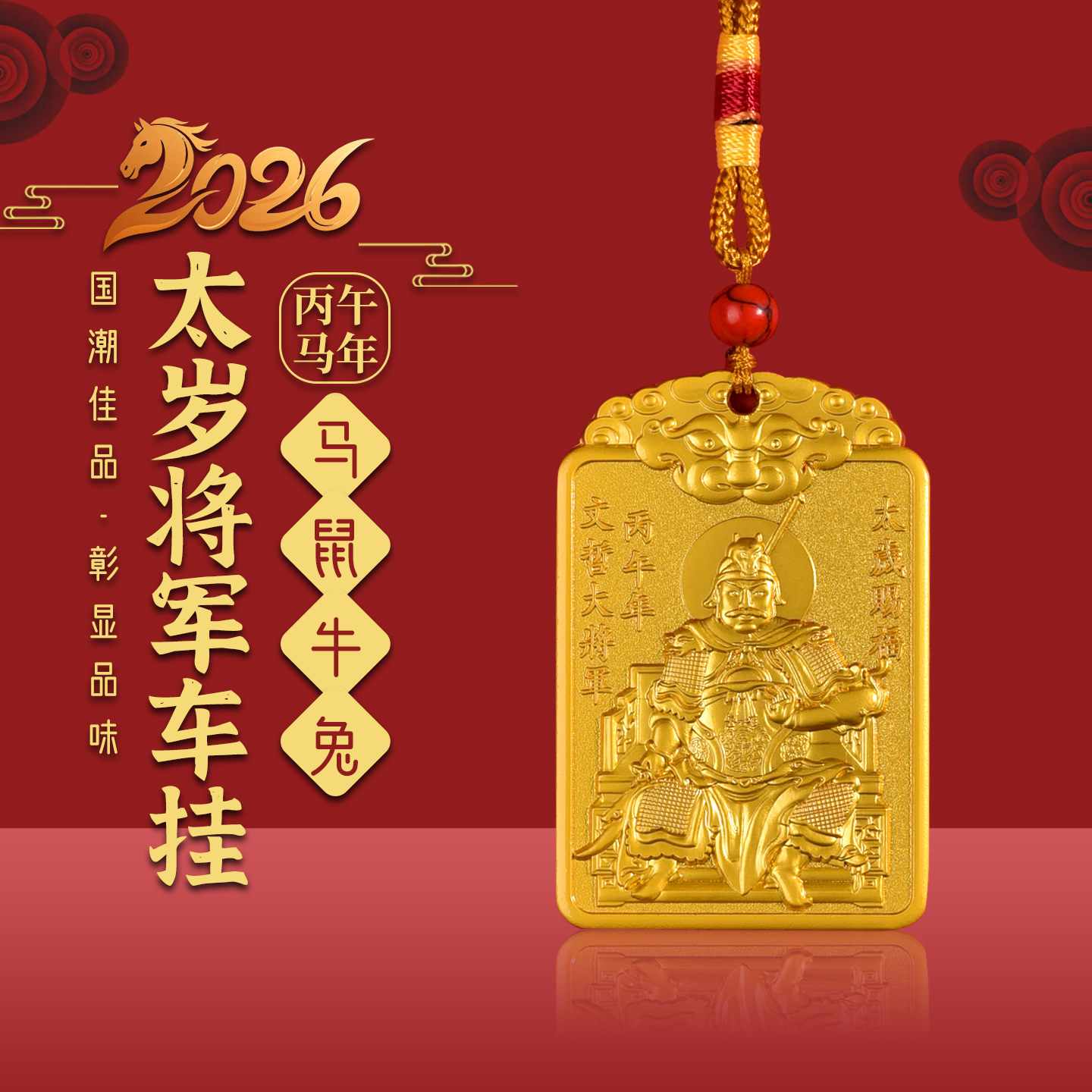 2026年文哲大将军汽车挂件太岁将军牌本命年属马鼠牛兔犯化护身符