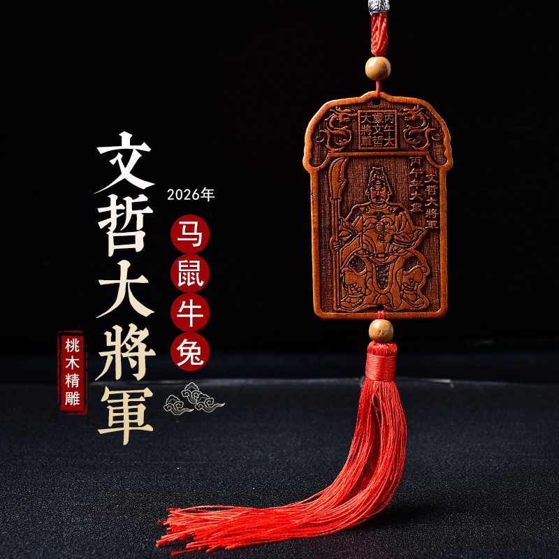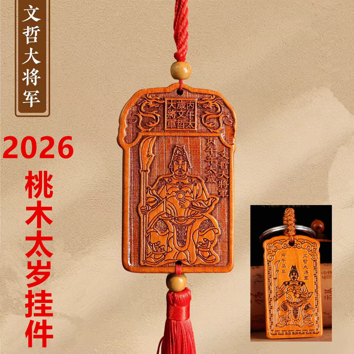 2026年文哲将军太岁牌桃木钥匙扣本命年生肖马鼠牛兔车挂车内挂饰