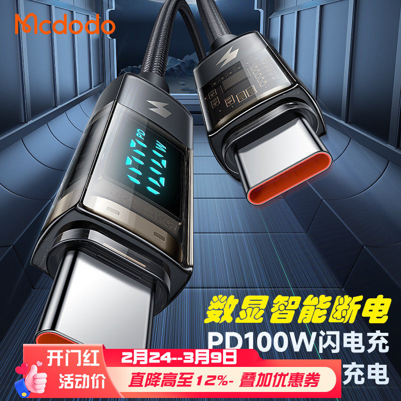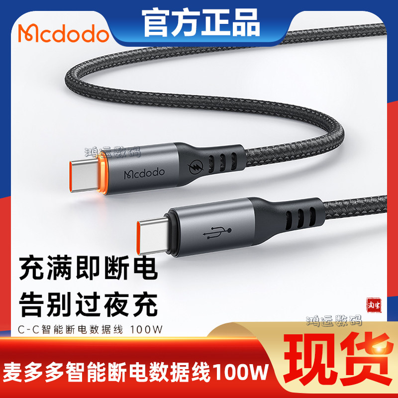 麦多多ctoc智能断电双typec数显macbook笔记本充电pd100w适用苹果17/16/15华为荣耀66W手机6A超级快充数据线