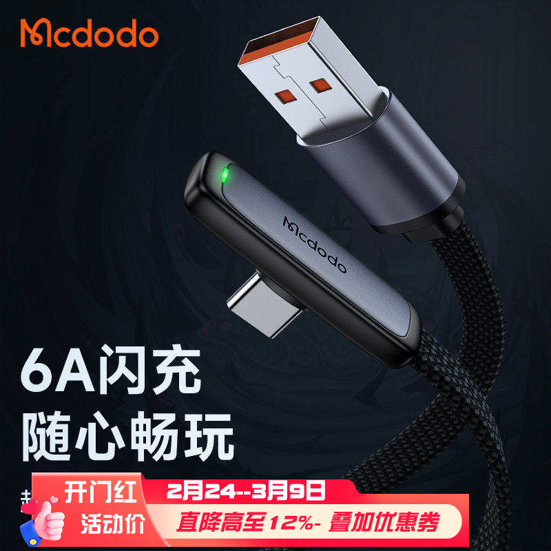 麦多多Type-C数据线弯头6A/5A超级快充适用于华为mate50p60荣耀oppo小米vivo手机100W/66W闪充手游超薄充电线