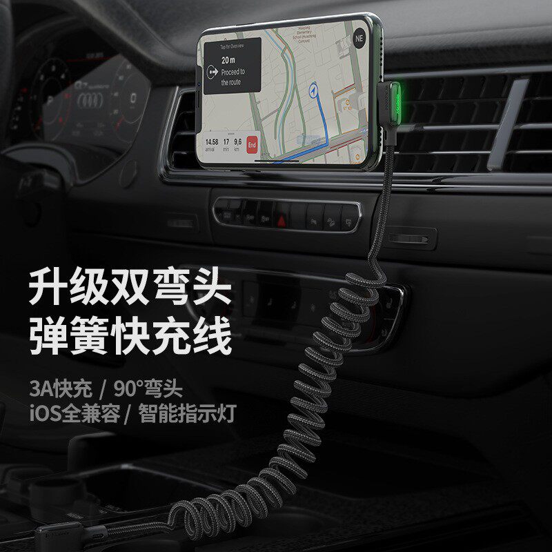 麦多多双弯头弹簧数据线适用苹果14手机充电线iPhone13车载CarpIay伸缩苹果充线汽车12快充11ipad平板数据线8