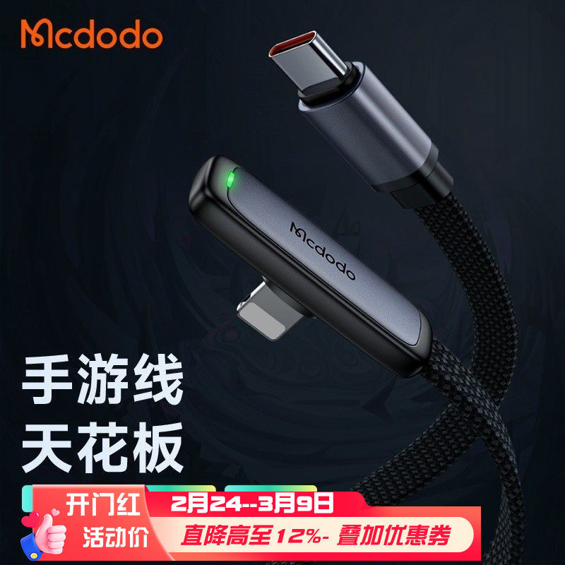 麦多多Type-C to Lightning数据线36W适用于iphone14/13pro手游pd快充xr/11/12p充电器线灯充电线20W弯头ctoc