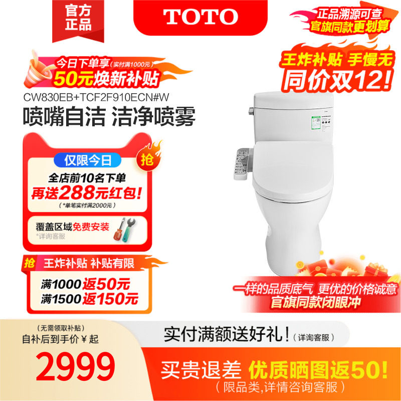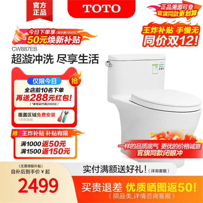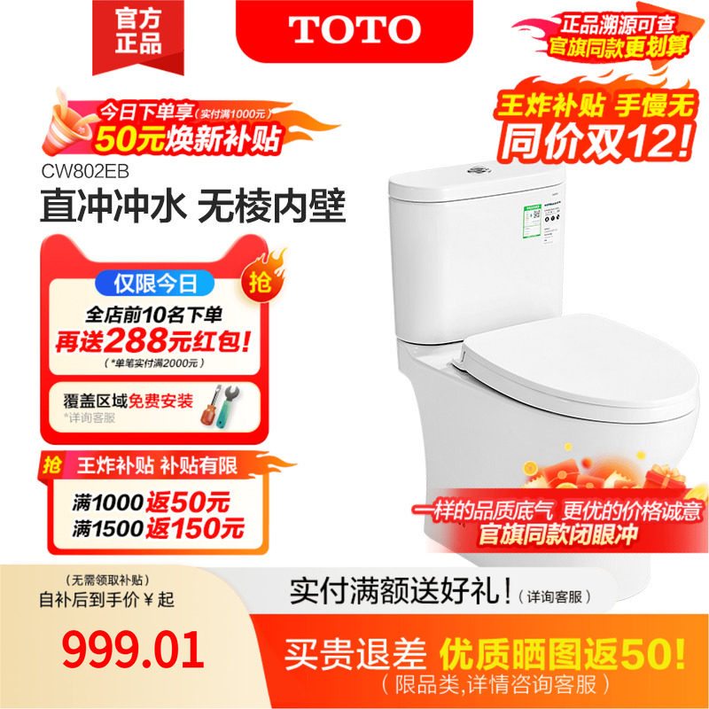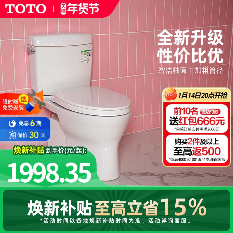 [焕新补贴] TOTO卫浴小户型家用马桶智洁极漩防臭节水CW802(04-B)