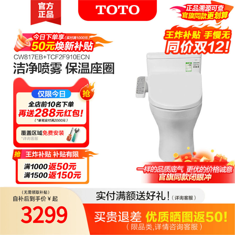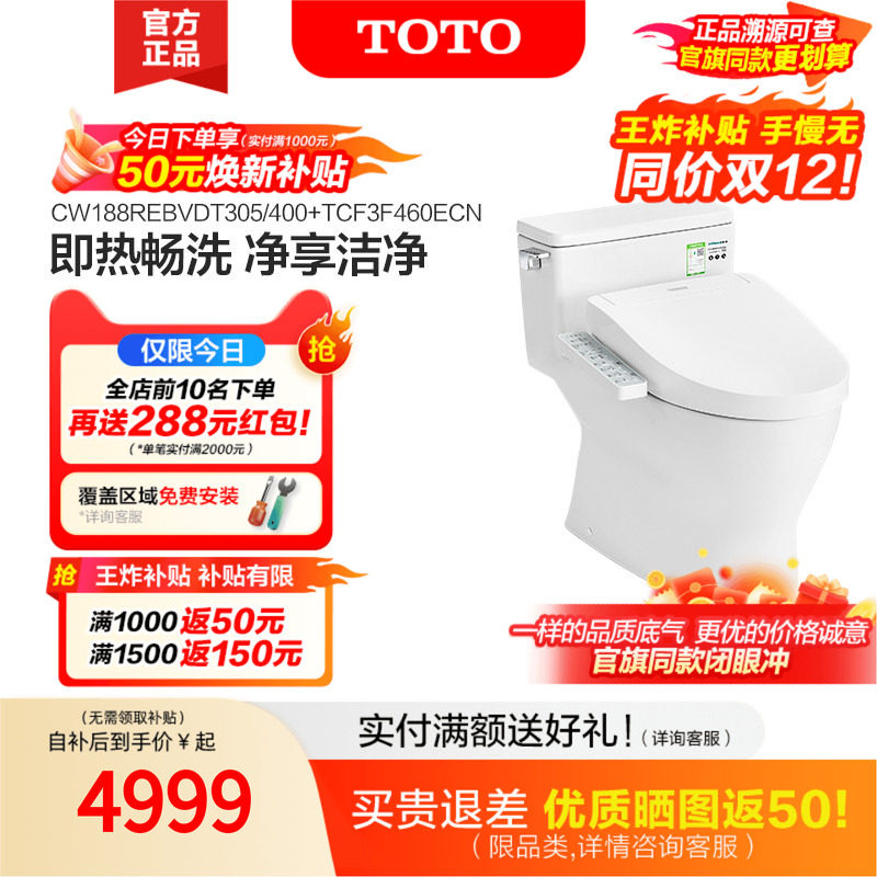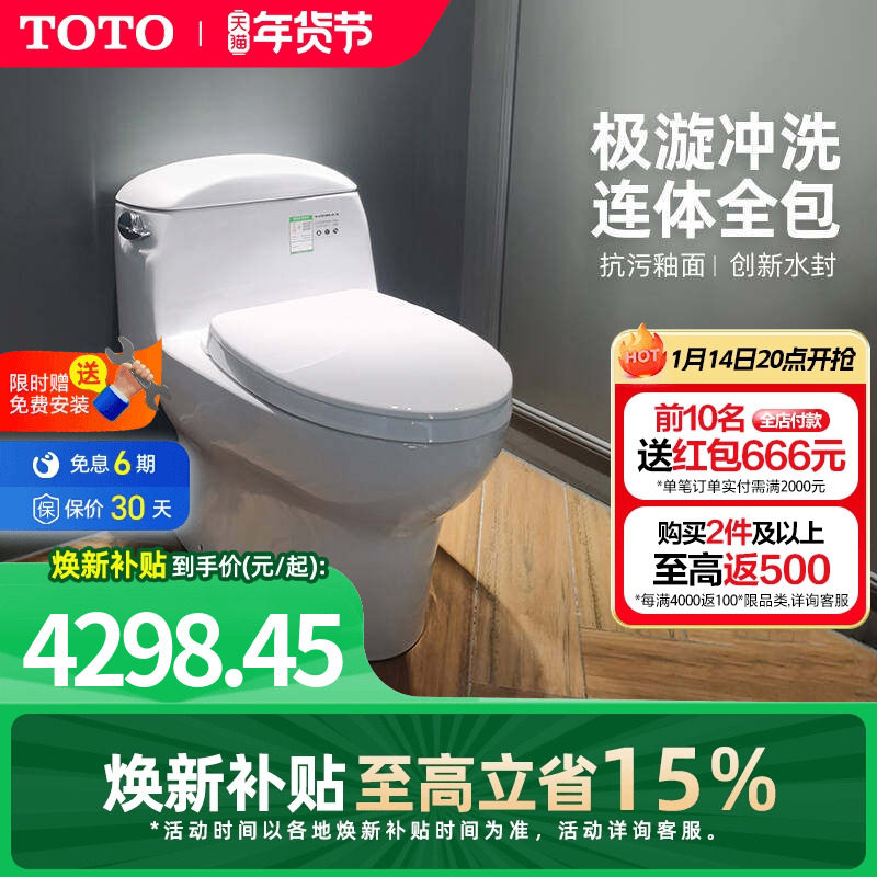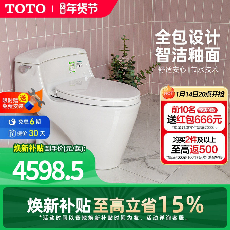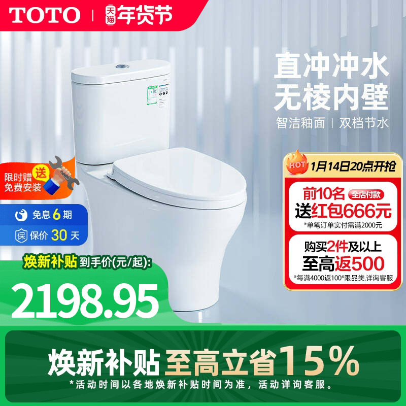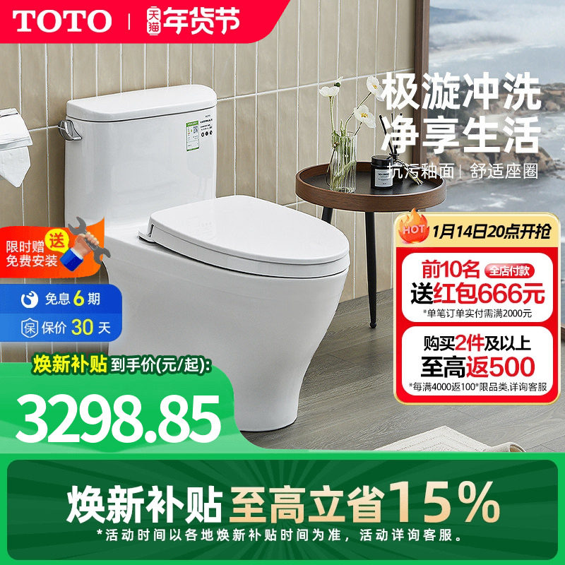 [焕新补贴] TOTO卫浴家用连体全包抽水马桶防臭座便器CW988(04-A)