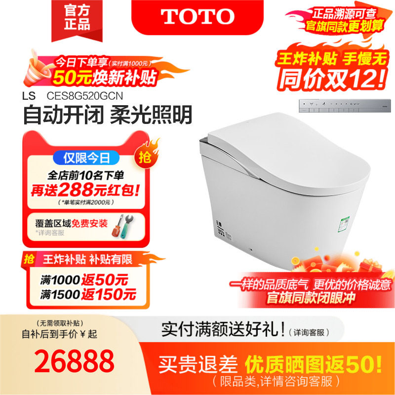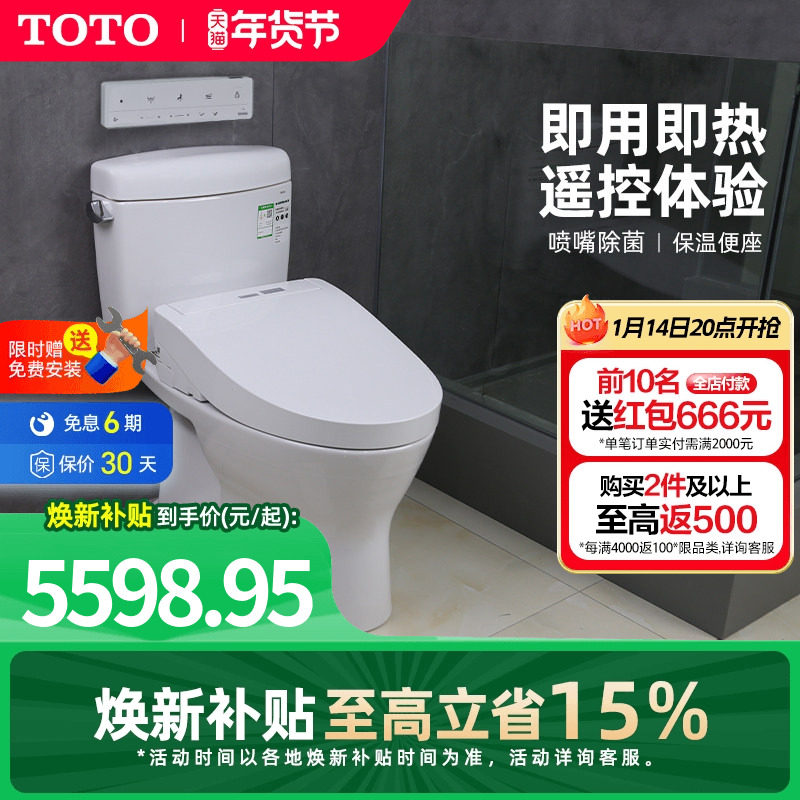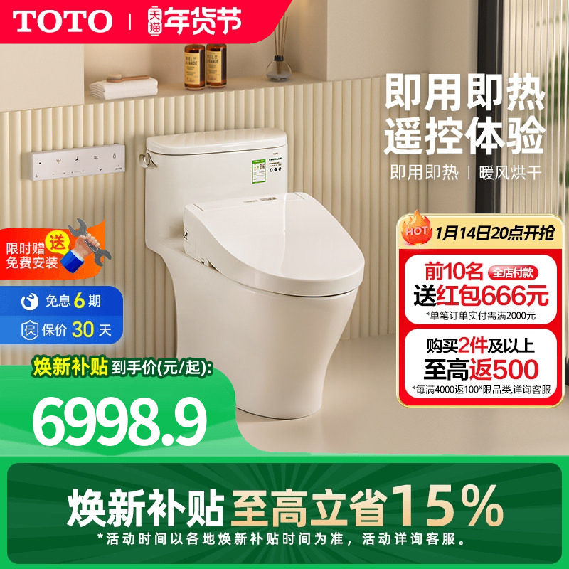 TOTO卫浴即热智能马桶抗菌除臭卫洗丽遥控虹吸坐便887+3M460(02)