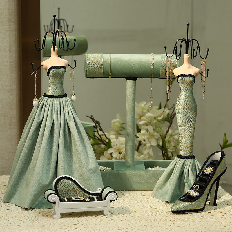轻奢绒布项炼展示架耳钉耳吊吊坠收纳架子ins风珠宝首饰拍照道具