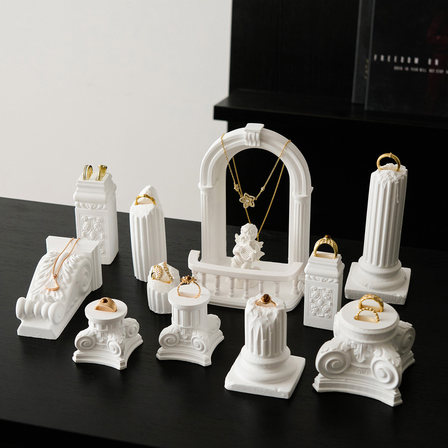 高级感石膏罗马柱戒指托展示架欧式复古首饰拍照道具橱窗陈列收纳