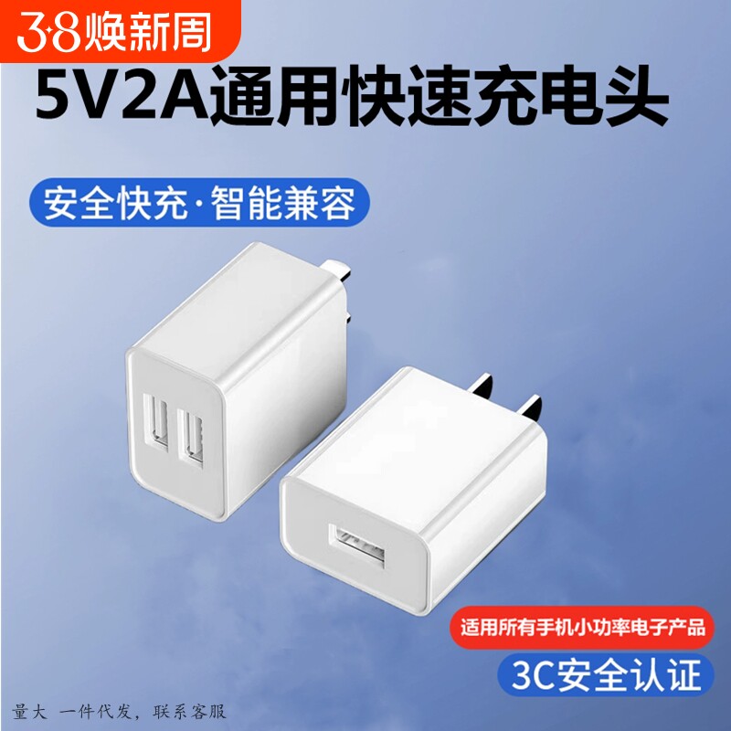 充电头5V1A小功率5W慢充蓝牙音箱智能手表台灯老人机2A双口手机充电器适用小米荣耀华为苹果安卓通用标准接口