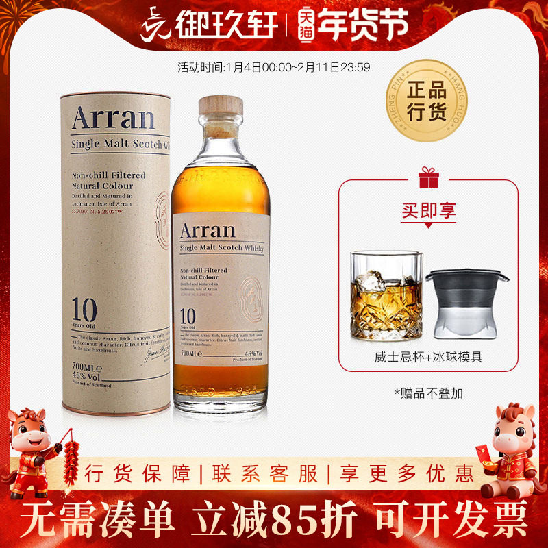 【自营】Arran艾伦10年苏格兰单一麦芽威士忌700ML原瓶进口洋酒