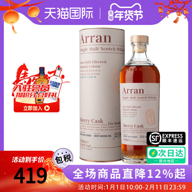 艾伦威士忌雪莉桶桶强单一麦芽Arran Sherry 700ml礼盒送礼进口酒
