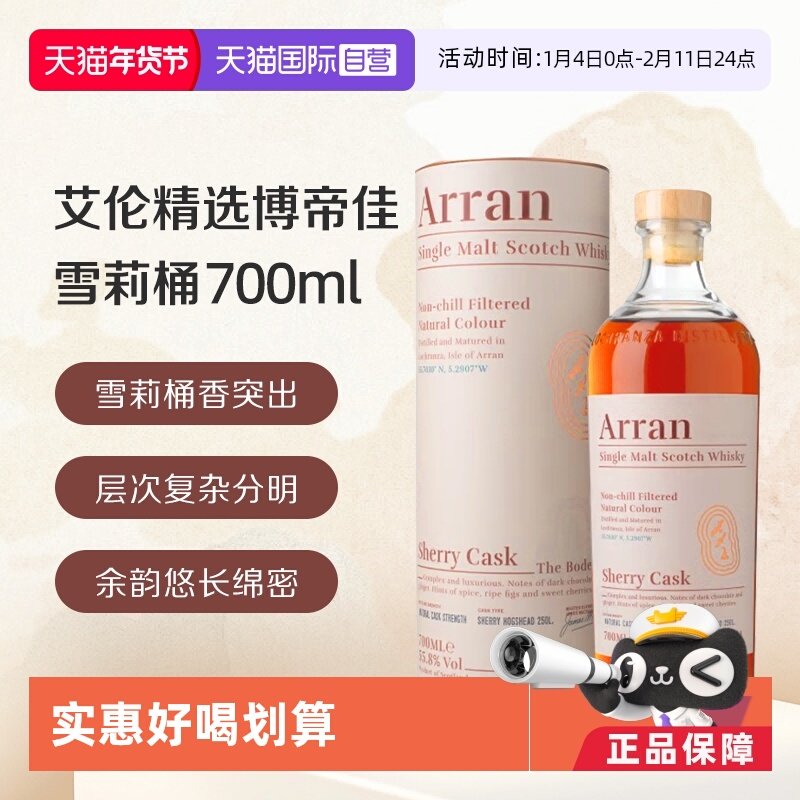 Arran艾伦博帝佳雪莉桶强700ML苏格兰单一麦芽威士忌海外进口洋酒