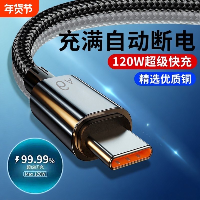 6A超级快充充电线数据线120W适用于华为Mate荣耀vivo双引擎typecUSB闪充