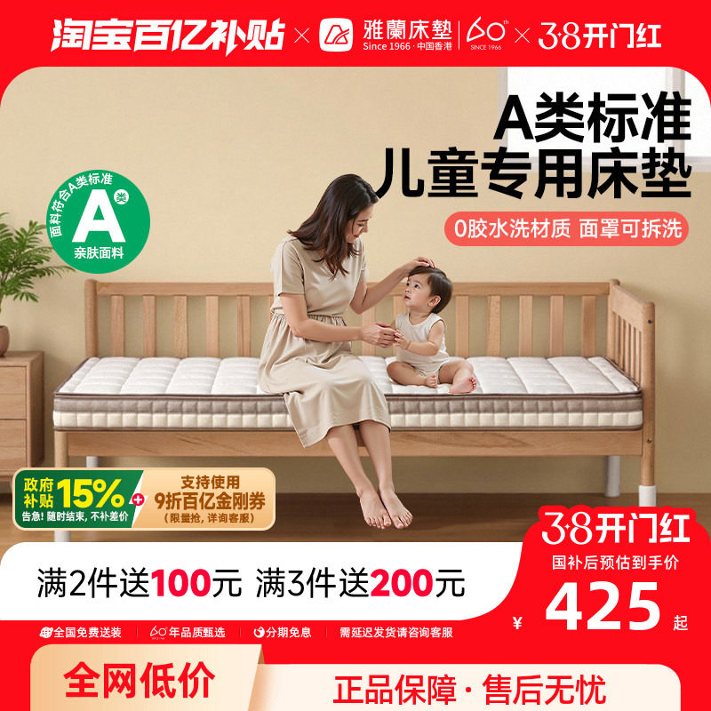 雅兰A类儿童拼接床垫护脊专用窄幼儿园宝宝薄榻榻米折叠学生单人