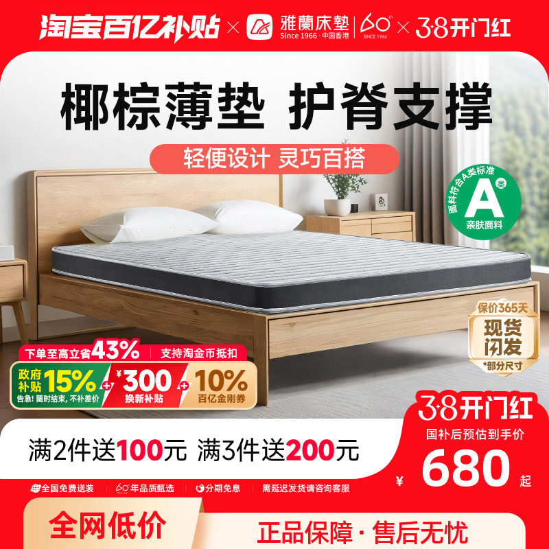 富安娜椰棕床垫折叠学生宿舍薄棕垫儿童护脊榻榻米棕榈加硬床垫子